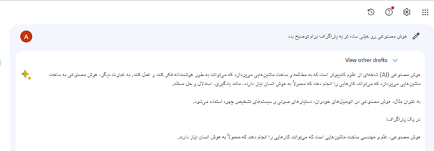 در مورد بارد هم باید بگوییم؛ ارائه ۳ پاسخ متفاوت برای هر سؤال توسط این چت بات یکی از نقاط قوت قابلتوجه آن محسوب میشود؛ زیرا میتوان با ترکیب مناسبترین محتوای آنها، به پاسخ خیلی خوبی دست یافت؛ اما متاسفانه در زمینه ارائه پاسخ دقیق و خلاقانه با جزئیات کافی، در مقابل ChatGPT و بینگ حرفی برای گفتن ندارد.