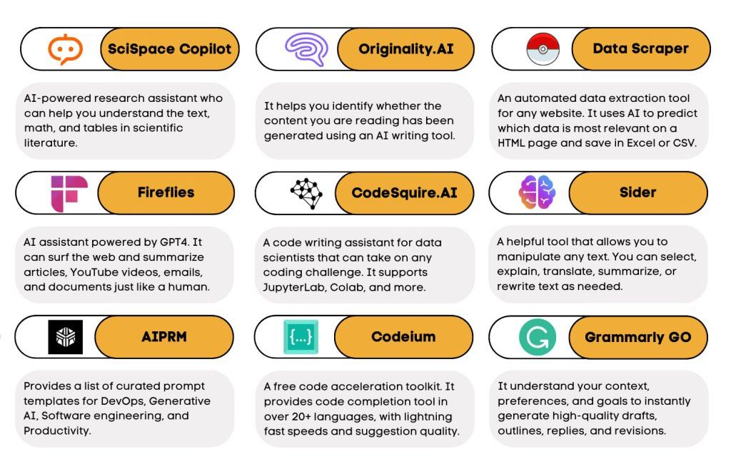 اکثر ابزارهای هوش مصنوعی مولد دارای افزونه گوگل کروم هستند که استفاده از این ابزارها را برای کاربران این مرورگر راحت کردهاند؛ این ابزارها بیشتر شامل ابزارهای تولید محتوای متنی، چتباتها، متنخوانها، ویراستاران متن و تبدیل متن به صدا یا صدا به متن هستند. با استفاده از افزونههای گوگل کروم میتوانید بهسرعت و بهراحتی از قابلیتهای مختلف AI بهرهمند شوید.