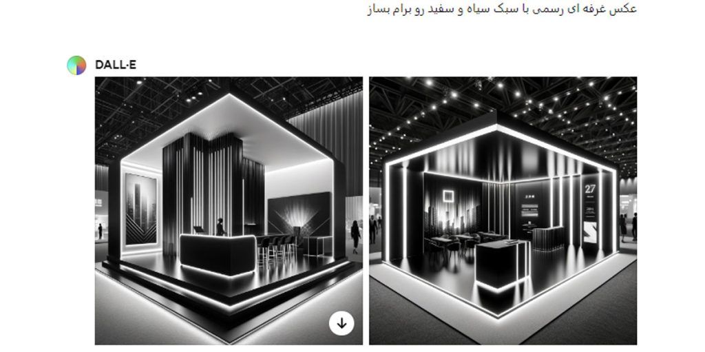 اگر خروجی ابزارهای معرفیشده باب میلتان نیست و دوست دارید طراحیهای ارائهشده با AI بیشتر نزدیک به تصویر ذهنیتان باشد، باید از ابزارهای دیگری برای طراحی غرفه استفاده کنید؛ مثلاً میتوانید طراحی موردنظرتان را با نوشتن توضیحی دقیق با جزئیات در پلاگین DALL E چتبات ChatGPT 4 شرح دهید و از آن بخواهید تصویری بر اساس توضیحاتتان بسازد؛ این پلاگین هم چند ثانیه بعد تصویر طراحی موردنظرتان را نمایش میدهد.